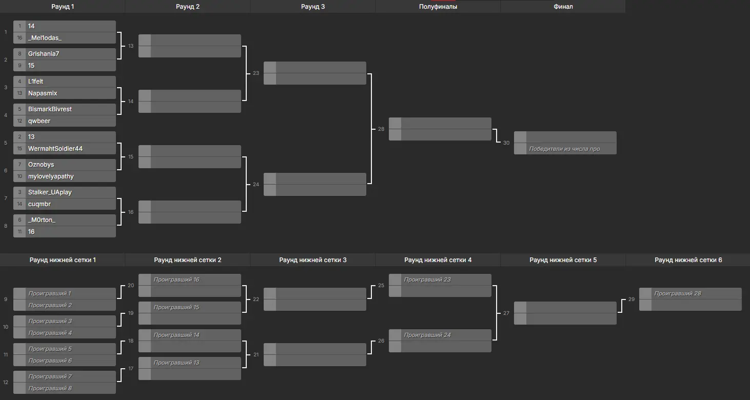 Турнірна сітка івенту "PIG WARS"